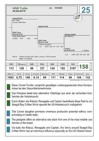 ) The pedigree offers an alternative sire stack from one of the most reliable cow