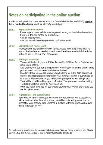 - Please register on our website www.ohg-genetic.de in good time before the auction.